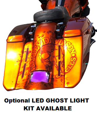 Our Kit include the 2 Bags, our new WIPI Full Rear Fender. Fabrication is with Hand Laid Reinforce Fiberglass to Insure Super Strength in all the critical Area. Each kit also have 3 LED Lights built in the fender.